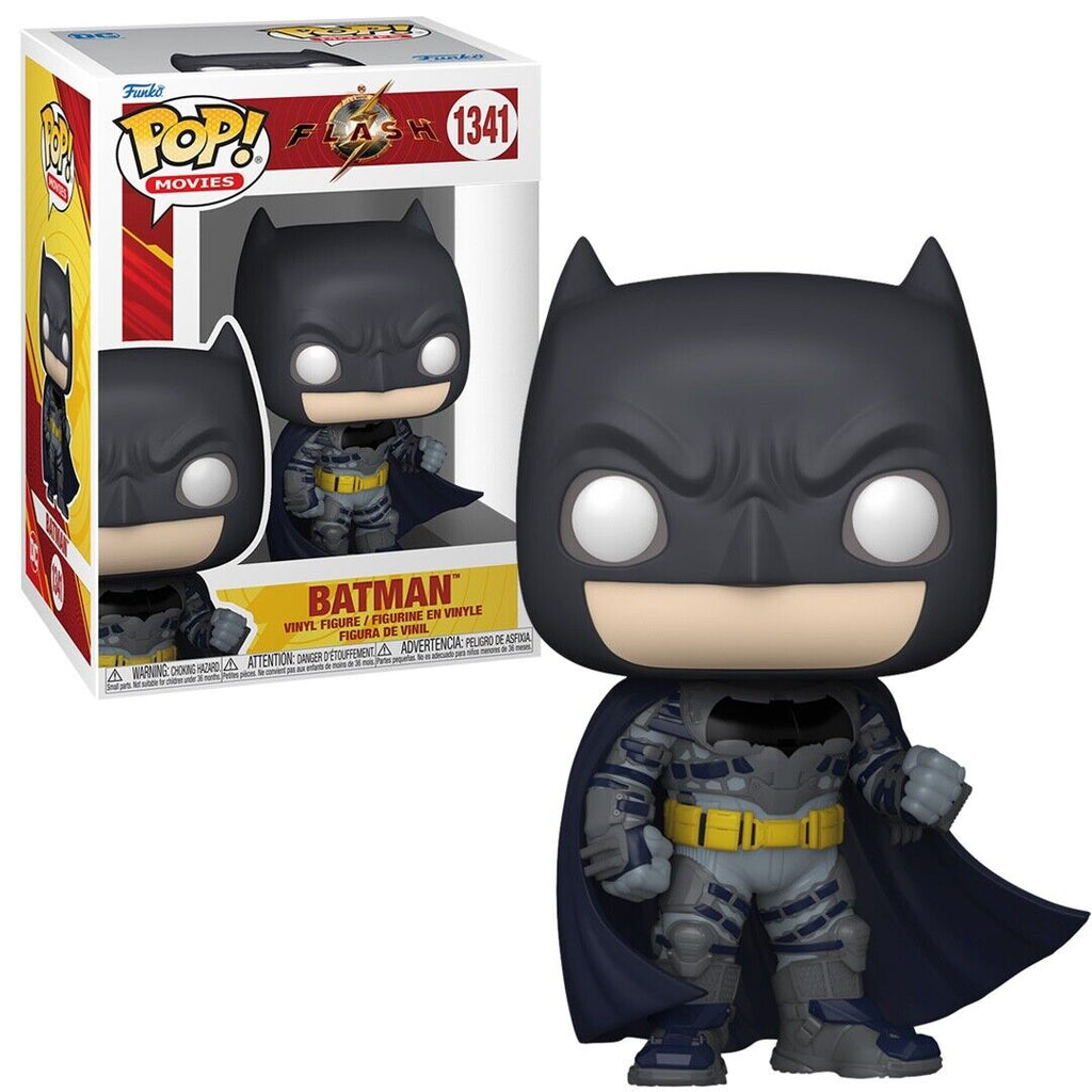 Batman (Armour Suit) The Flash Funko Pop! DC Comics Vinyl Figure measures approximately 10 cm tall and comes packaged in a cardboard box with display window.