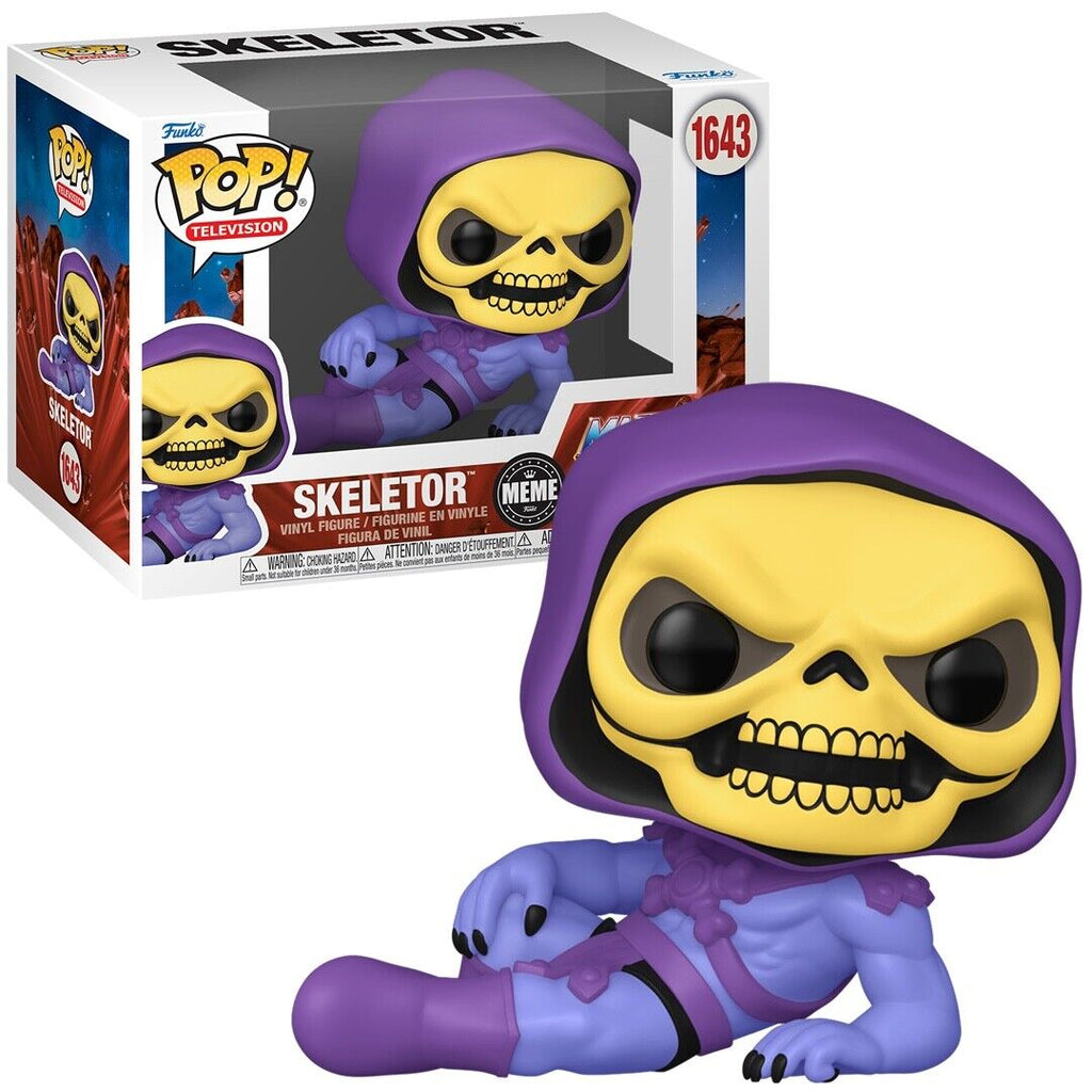 Skeletor (Meme) Masters of the Universe Funko Pop! Television Vinyl Figure measures approximately 10 cm tall and comes packaged in a cardboard box with display window.