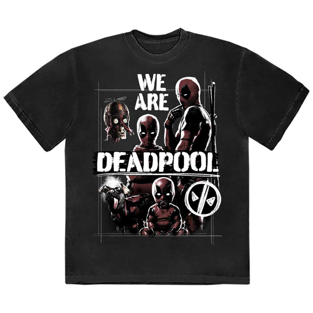 Official licensed Marvel Comics Unisex T-Shirt featuring the 'Deadpool We Are Deadpool' design motif. High quality T-Shirt available in a black colourway. High quality soft-style cotton unisex t-shirt featuring front printing. Comes in a wide range of sizes from Small through XX-Large, subject to availability.