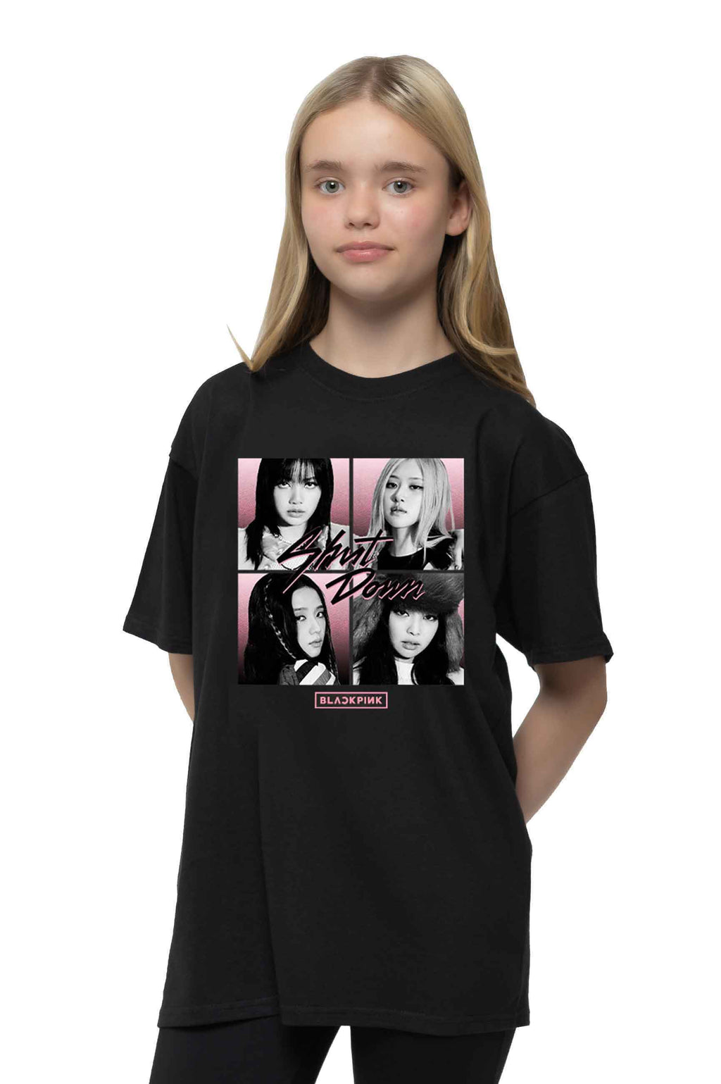 An official licensed BlackPink Unisex T-Shirt featuring the 'Shut Down Photo Grid' design motif. This high quality T-Shirt is available in a black colourway. A high quality soft-style cotton t-shirt with short sleeves and crew neck. Features front printing. Comes in a wide range of sizes from Small through XX-Large, subject to availability.