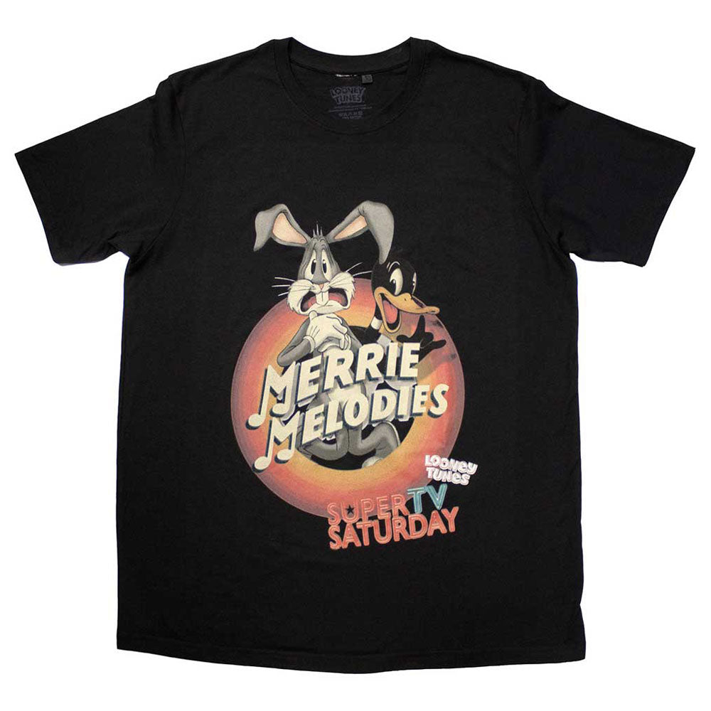 Official licensed Looney Tunes Unisex T-Shirt featuring the 'Merrie Melodies' design motif. High quality T-Shirt available in a black colourway. High quality soft-style cotton unisex t-shirt featuring front printing. Comes in a wide range of sizes from Small through XX-Large, subject to availability.