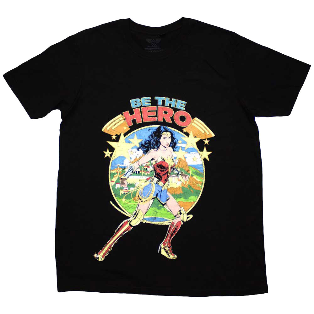 Official licensed DC Comics Unisex T-Shirt featuring the 'Wonder Woman Be The Hero' design motif. High quality T-Shirt available in a black colourway. High quality soft-style cotton unisex t-shirt featuring front printing. Comes in a wide range of sizes from Small through XX-Large, subject to availability.