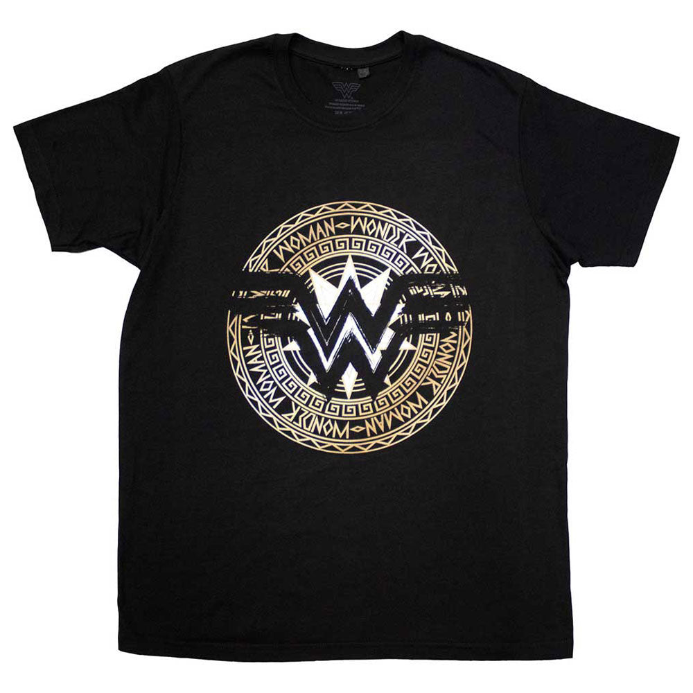 Official licensed DC Comics Unisex T-Shirt featuring the 'Wonder Woman Gold Circle' design motif. High quality T-Shirt available in a black colourway. High quality soft-style cotton unisex t-shirt featuring front printing. Comes in a wide range of sizes from Small through XX-Large, subject to availability.